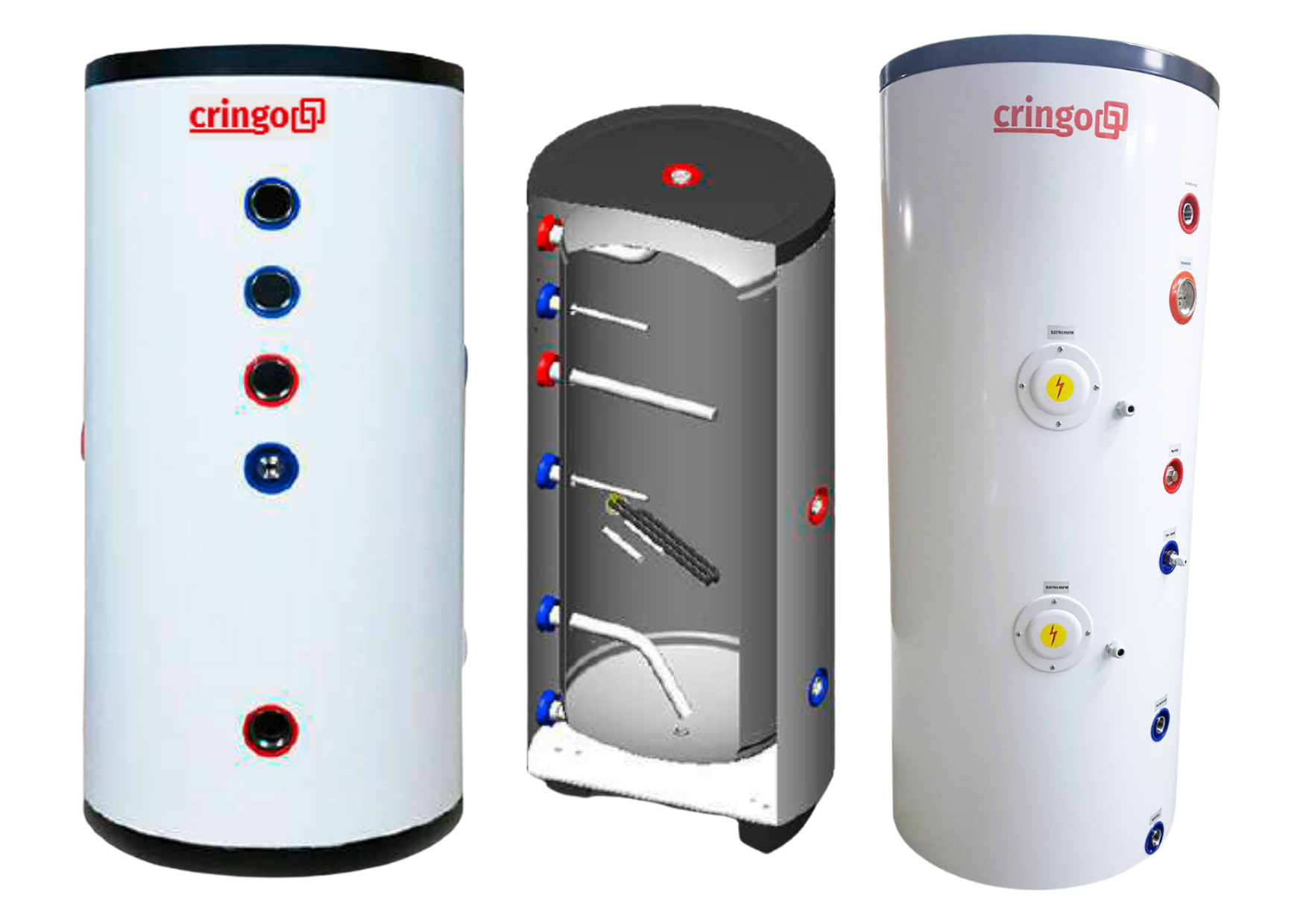El calentador de agua caliente eléctrico, híbrido CRINGO que está certificado ISO9001 y CE, ofrece un NUEVO concepto de aplicación para almacenamiento de agua caliente comercial y doméstica. Este es el NUEVO calentador de agua solar, que emplea paneles solar fotovoltaicos estándar para su suministro de energía.