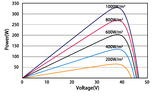 CURVAS I-V DEL MÓDULO FV (350W) CURVAS P-V DEL MÓDULO FV (350W)